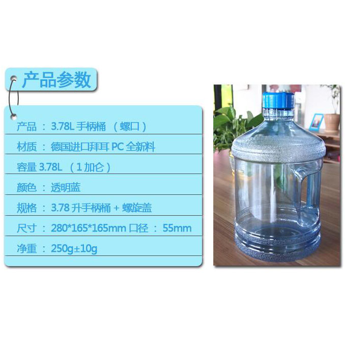 型号:1加仑PC饮用水桶带手柄,配螺纹盖子。