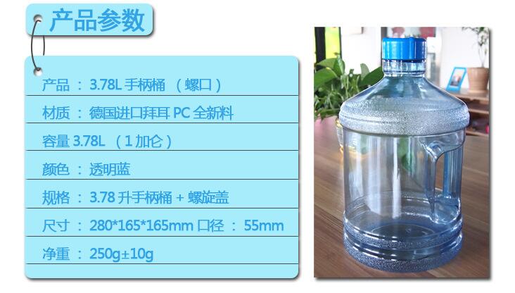 型号:1加仑PC饮用水桶带手柄,配螺纹盖子。1箱30个。850ML水杯一箱50个。
